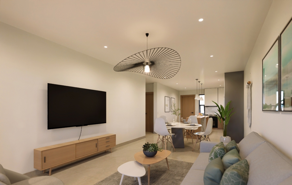 Step onto the terrace and embrace the Caribbean breeze. The terrace of Punta Cana condo for sale provides the perfect spot for morning coffees or evening gatherings, surrounded by lush greenery and a touch of paradise.